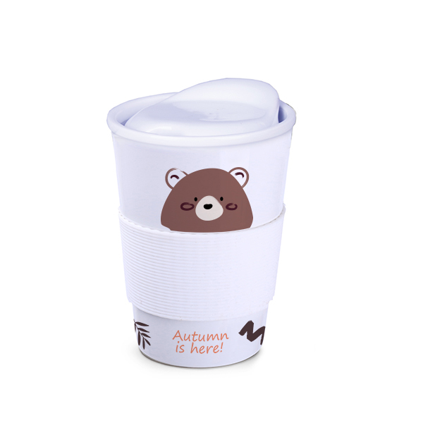 Ceramiczny kubek z elegancką porcelanową przykrywką i silikonową uszczelką.