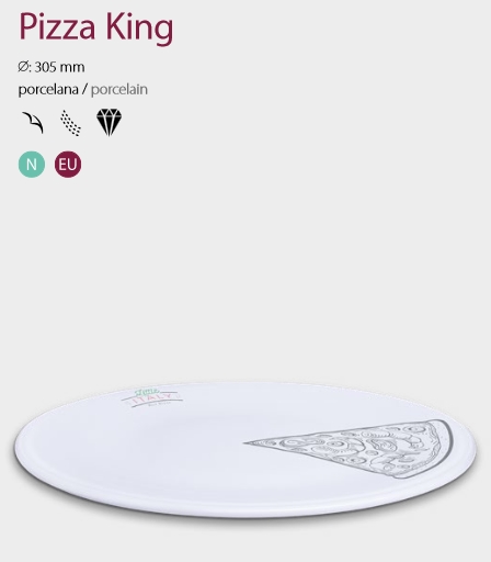 Talerz do Pizzy o średnicy 305 mm wykonany z porcelany. Nadruk można wykonać za pomocą kalki ceramicznej w kilku miejscach lub dookoła. Dostępna jest również personalizacja. Talerz nadaje się do nanoszenia dużych nadruków. Porcelana europejska.