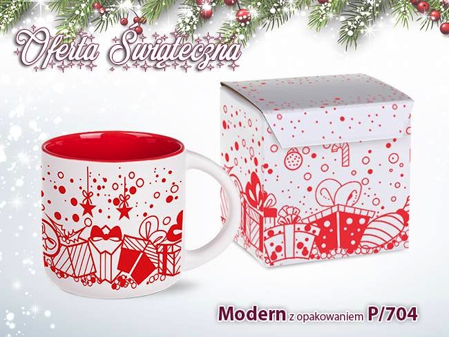 Opakowanie na kubki ceramiczne z motywem świątecznym.