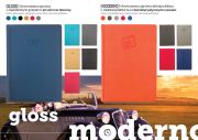 Kalendarze książkowe Gloss posiadają nowoczesną oprawę o metalicznym połysku i strukturze tkaniny. Do produkcji używane są wytrzymałe i miłe w dotyku włoskie materiały. Dostępne kolory to: granatowy, turkusowy, czarny, złoty, czerwony i grafitowy.
