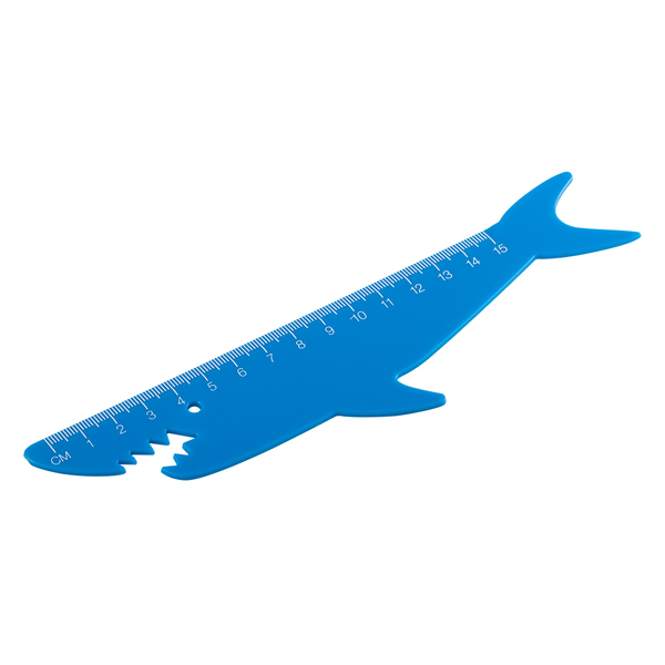 Plastikowa linijka o długości 15 cm w kształcie rekina.
