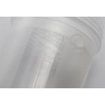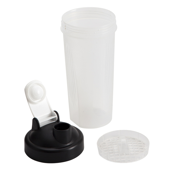 Przeznaczony dla ludzi prowadzących aktywny tryb życia szczelny bidon i shaker o pojemności 600 ml na odżywki białkowe oraz koktajle. Wyposażony w sitko.