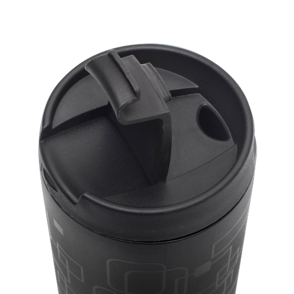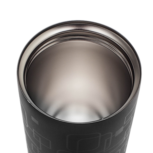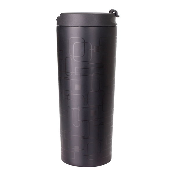 Kubek izotermiczny - termos o pojemności 450 ml wykonany ze stali nierdzewnej pokrytej czarnym lakierem z błyszczącym nadrukiem. Próżnia pomiędzy dwiema ściankami zapewnia bardzo dobre właściwości termoizolacyjne. Wewnętrzna ścianka wykonana ze stali o podwyższonej jakości 18/8.