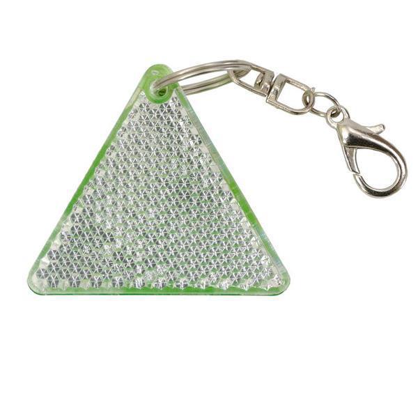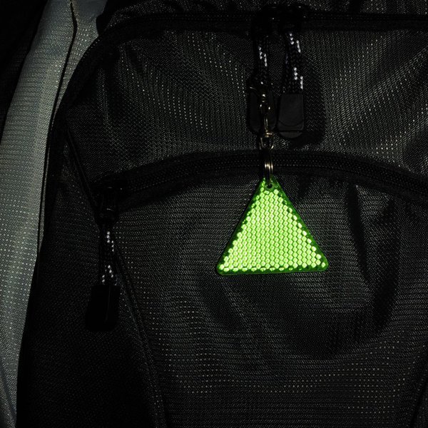 Brelok trójkąt – światełko odblaskowe dwustronne, z karabińczykiem.