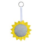 Maskotka „Słońce” wykonana z odblaskowego materiału i filcu.