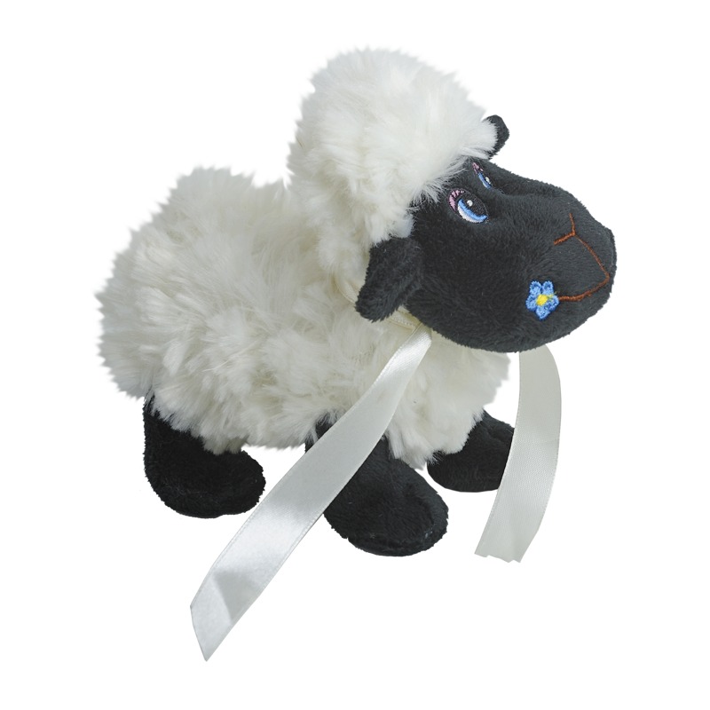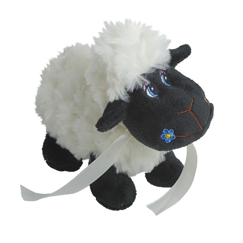 Wykonana z poliestru maskotka w kształcie owieczki. Wyposażona w tasiemkę z miejscem na logotyp.