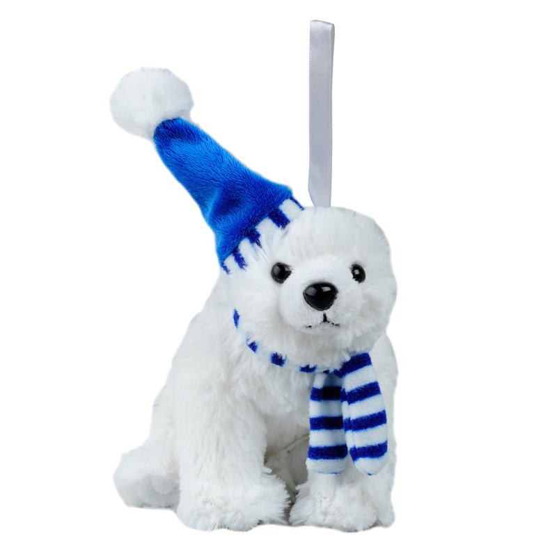 Wykonana z poliestru maskotka w kształcie misia polarnego. Wyposażona w tasiemkę z miejscem na logotyp.