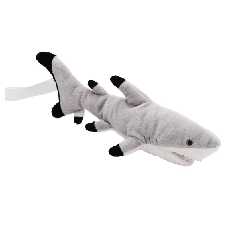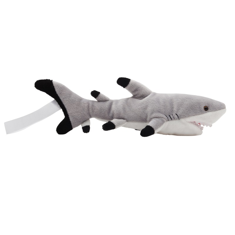 Maskotka w kształcie rekina. Wyposażona w tasiemkę z miejscem na logotyp.