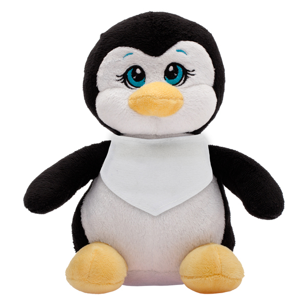 Pluszowa maskotka w kształcie pingwina z zawiązywaną chustą na której można nanieść logotyp.