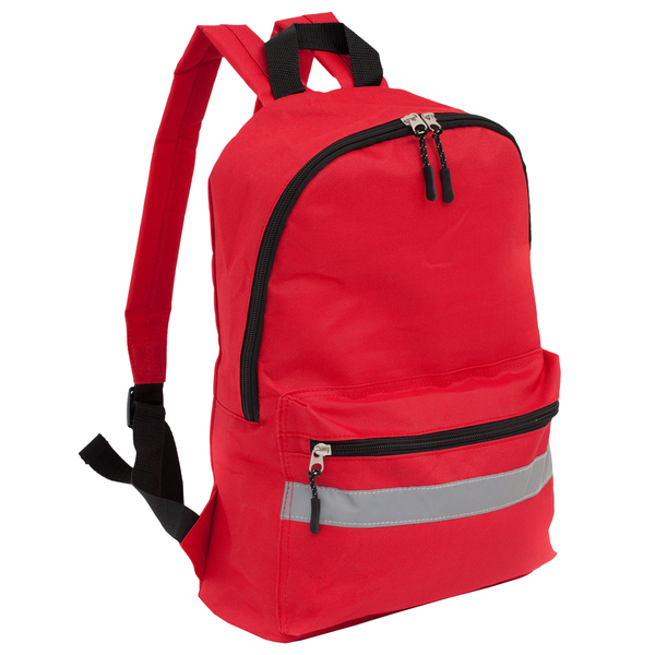 Plecak dziecięco-młodzieżowy wykonany z poliestru 600D z taśmą zwiększającą widoczność o szerokości 2,5 cm. Nie należy utożsamiać tego produktu z produktami ochrony indywidualnej w rozumieniu Dyrektywy o Środkach Ochrony indywidualnej 89/686/EEC.