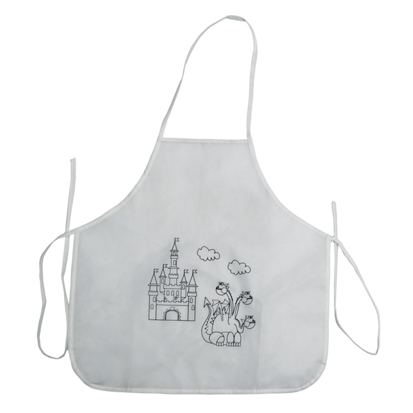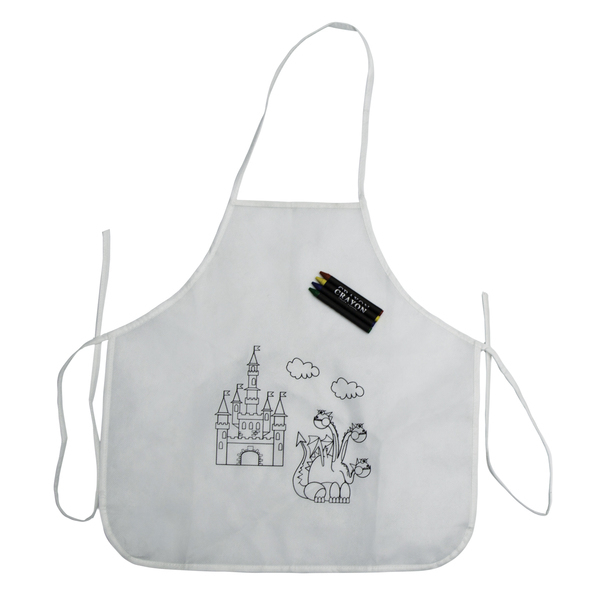 Fartuszek do samodzielnego kolorowania dla dzieci. Zawiera 4 kredki woskowe w kolorach: niebieski, czerwony, żółty i zielony.
