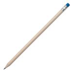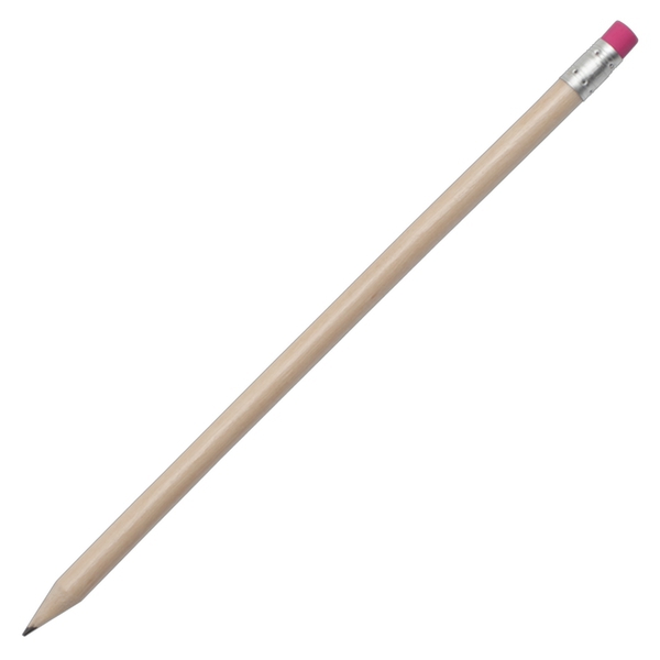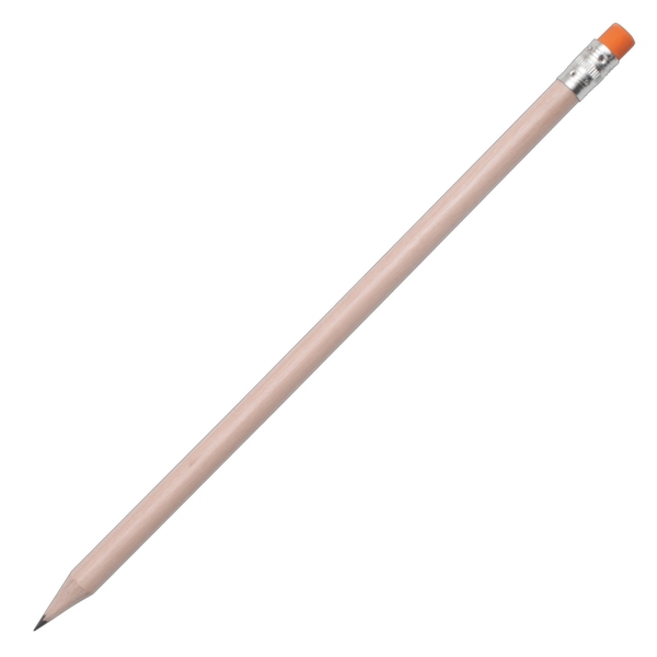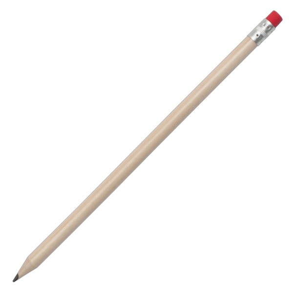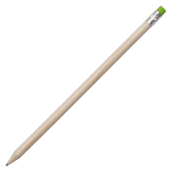 Zaostrzony drewniany ołówek HB z kolorową gumką.