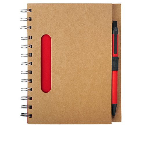 Notatnik z długopisem. 70 kartek formatu B6 w linie z papieru z surowców wtórnych, części plastikowe są biodegradowalne.