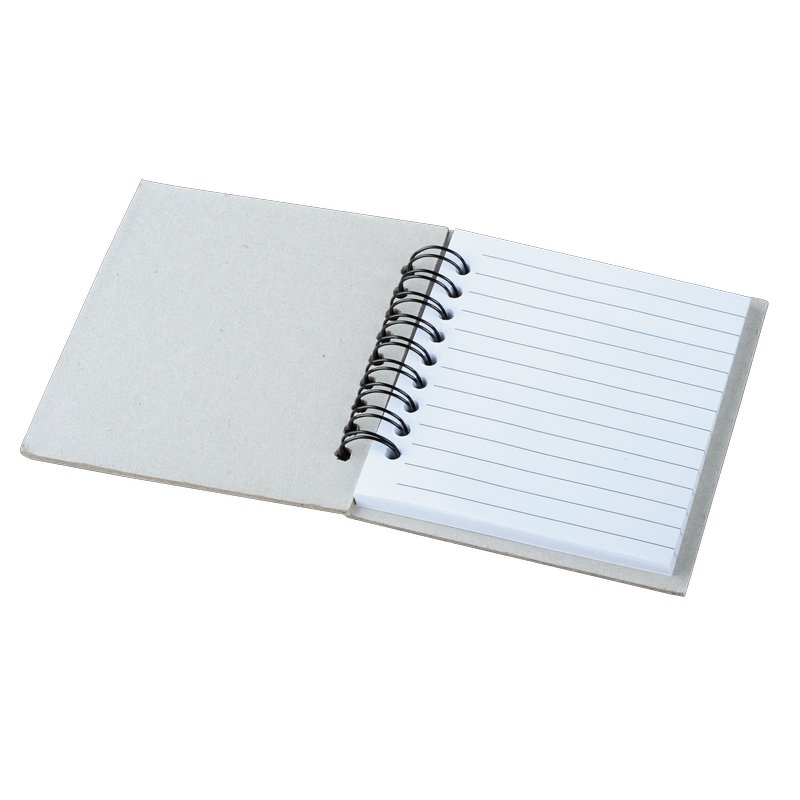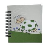 Notes dla dzieci, na spiralce, z rysunkiem krówki na okładce. Okładka o grubości 2 mm wykonana z surowców wtórnych. 50 kartek w linie, gramatura 58 g/m².