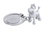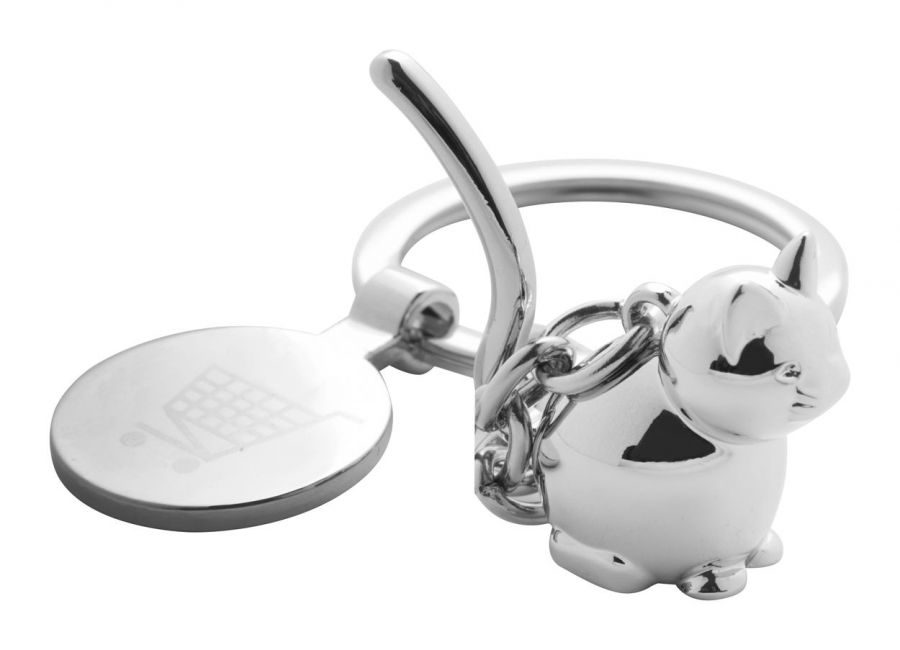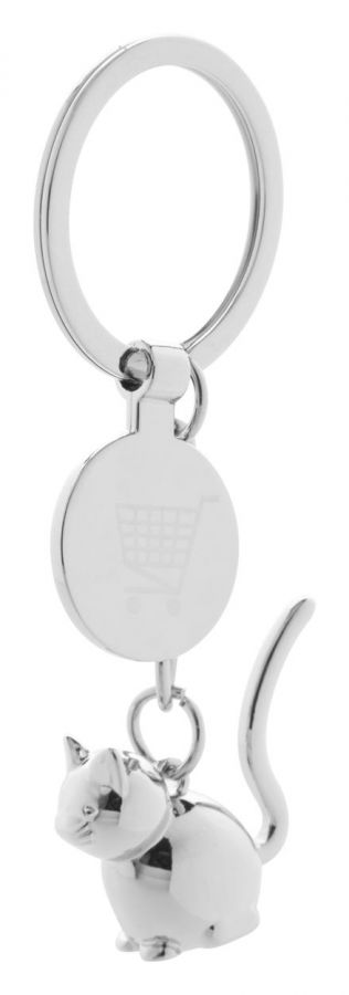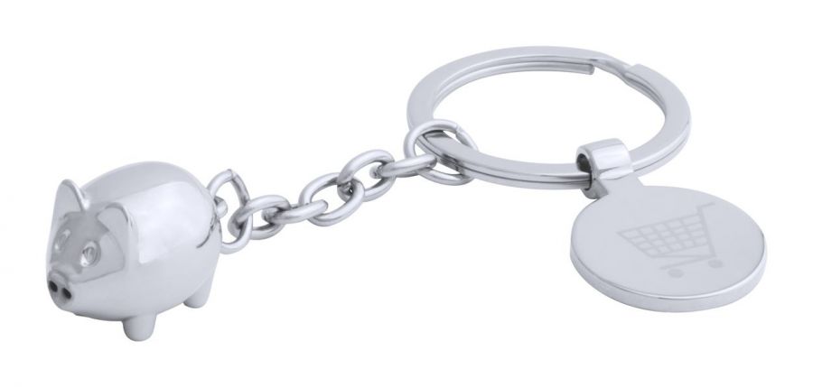 Metalowy brelok z figurką zwierzęcia i monetą do wózków sklepowych.