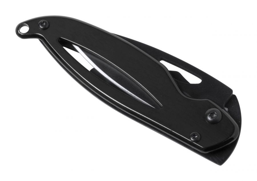 Metalowy nóż kieszonkowy z zabezpieczeniem.