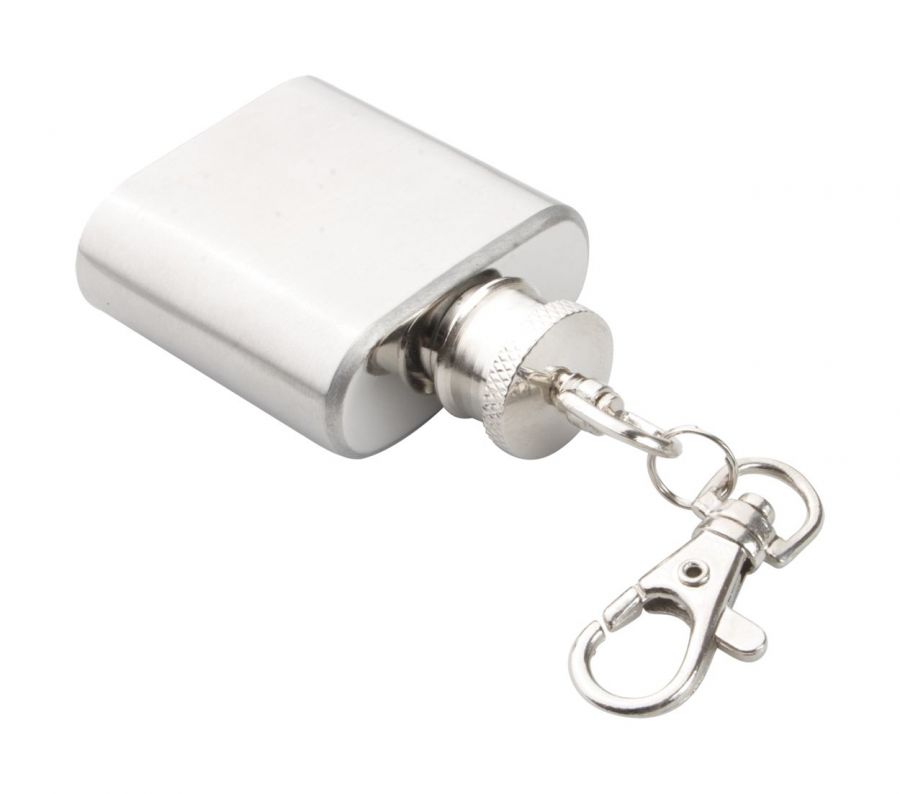 Mini metalowy brelok z piersiówką, 30 ml.