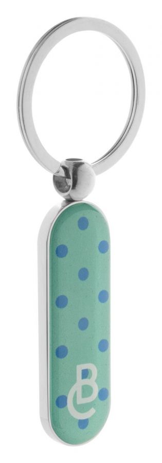 Metalowy brelok w czarnym opakowaniu prezentowym.