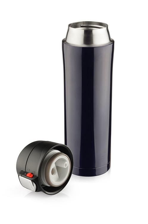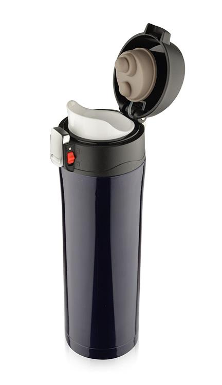 Kubek LOCK to najlepsze cechy kubka termicznego i termosu w jednym produkcie. Wygodny rozmiar i ustnik, z którego można łatwo pić, połączone są z całkowicie szczelnym zamknięciem nieprzepuszczającym cieczy oraz doskonałą termoizolacją. Dzięki próżni między ściankami kubek trzyma temperaturę ok. 13 godzin. W produkcie zastosowano nowatorską blokadę zamka, która zabezpiecza kubek przed przypadkowym otwarciem. Wnętrze wykonane ze stali, pojemność kubka to 450 ml. Znakowanie możliwe na korpusie kubka.