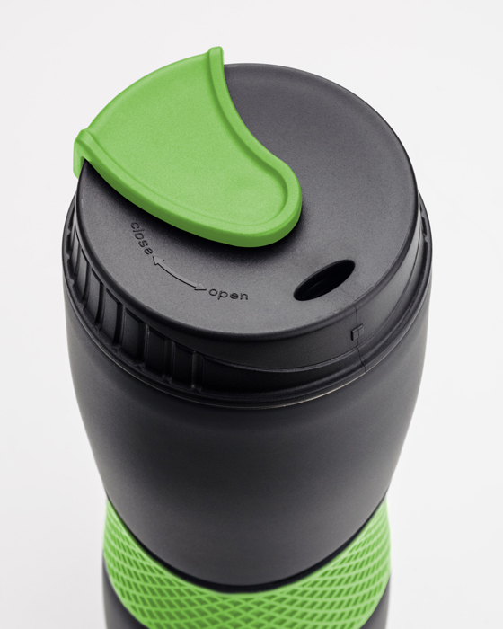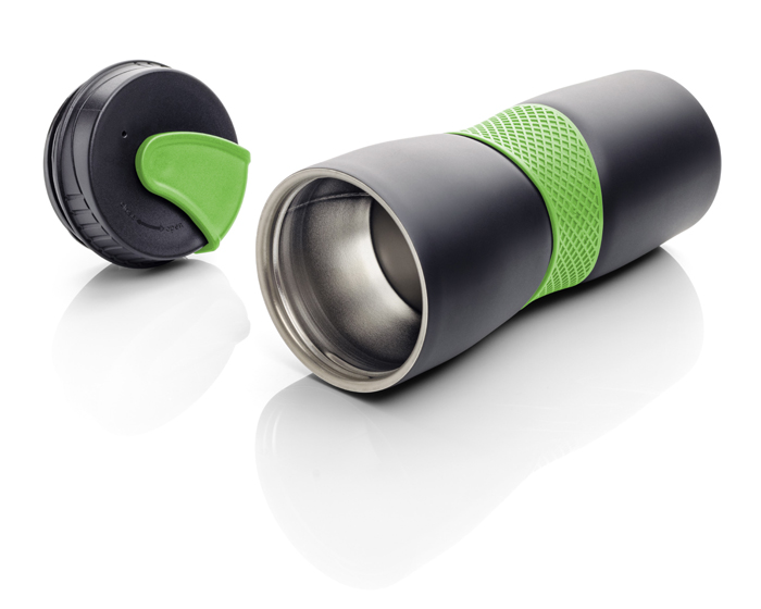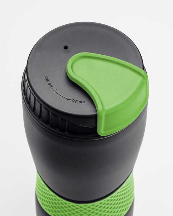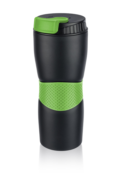 Kubek termiczny RORA charakteryzuje się modnie kontrastującym czarno-kolorowym wykończeniem. Kubek posiada przesuwany typ zamknięcia, które zabezpiecza przed wylaniem się napoju. Dzięki wygodnej silikonowej opasce kubek nie wyślizgnie się z ręki. Kubek został wykonany z stali nierdzewnej o podwyższonym standardzie i utrzymuje temperaturę napoju do 5 godzin.