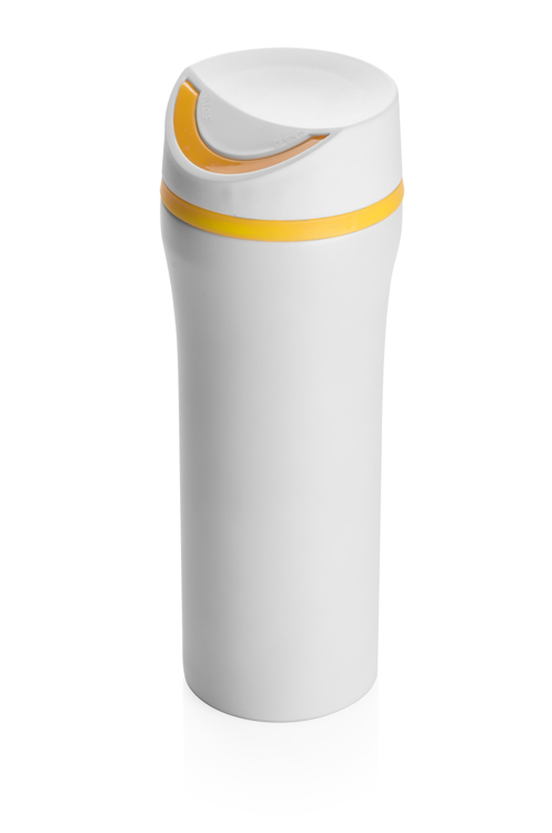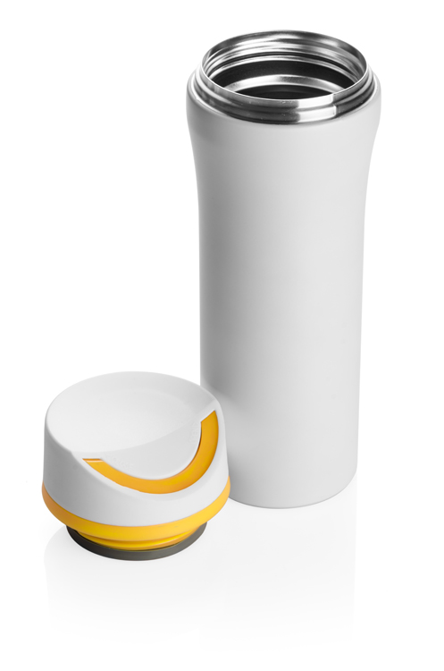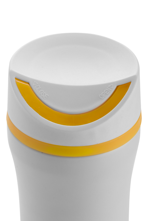 Innowacyjny kubek termiczny SAJO o współczesnym, prostym i gustownym wzornictwie. SAJO charakteryzuje się nowatorskim mechanizmem otwierania i zamykania. Po przekręceniu przykrywki wykręca się ustnik, kręcąc dalej można rozkręcić przykrywkę na dwa osobne elementy, które z łatwością można umyć. Mechanizm zapewnia 100% szczelność zamknięcia. Kubek został wykonany ze stali o podwyższonym standardzie. Izolacja próżniowa zapewnia utrzymanie temperatury napoju do 12 godzin. Kubek o pojemności 480 ml.