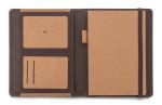 Teczka CHARCO to produkt łączący wygodę użytkowania i naturalny design. Wewnątrz znajduje się wbudowana ładowarka indukcyjna o mocy 5W, wymienny notes 64-kartkowy A5 z korkową okładką, kieszonki na wizytówki, kieszeń na niewielkie akcesoria biurowe oraz miejsce na długopis. Do zestawu dołączony jest również kabel do podłączenia ładowarki indukcyjnej. Okładka wykonana jest z naturalnego korka. Teczka zamykana na gumkę. Pakowana w eleganckie, proste pudełko papierowe.