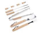 PANO to 9-elementowy zestaw do grilla w praktycznym etui zapinanym na zamek i wyposażonym w regulowany pasek dla wygody przenoszenia. W zestawie znajduje się łopatka, widelec, szczypce, szpile do szaszłyków (2 szt.) i uchwyty do kukurydzy (4 szt.). Uchwyty wszystkich elementów wykonane są z drewna.