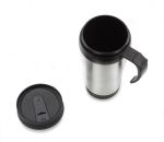 Klasyczny kubek termiczny o pojemności 400 ml, wykonany ze stali nierdzewnej oraz tworzywa. Z zewnątrz korpus jest metalowy natomiast wnętrze wykonane jest z tworzywa. Kubek wyposażony jest w wygodny uchwyt oraz zamknięcie typu "przesuń". Napoje w kubku należy przewozić w pozycji pionowej, aby nie narazić na ich rozlanie. Kubek utrzymuje temperaturę do 4 h. Znakowanie możliwe na korpusie.